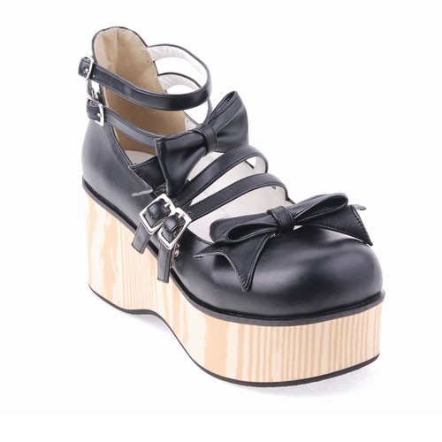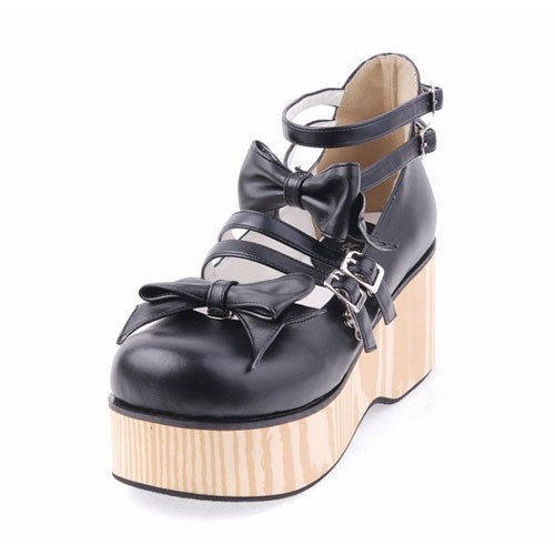 Nero 2.7″tacco alto adorabile Patent punta rotonda scarpe arco piattaforma decorazioni Lady Lolita