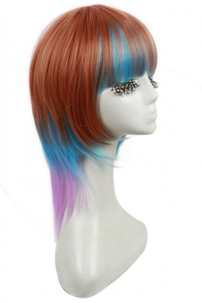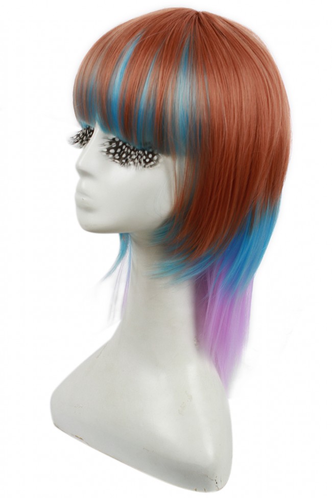 Caratteristiche: Questa è una parrucca di moda multicolore dei capelli whichconcluded marrone, blu e Pink.You può indossare in parti siasotto life.Fibers quotidiane sono resistenti al calore, ma non è consigliabile stile di calore se non si ha esperienza precedente o un aiuto professionale.Campo di temperatura è (120-150 ° C) (70-80 ° C) per l’acqua calda 250-300 ° C per ferri da stiro caldo, 160-175 ° C.