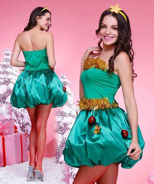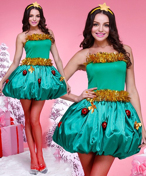 Caratteristiche: abito verde con nastro colorato giallo e altre decorazioni christume simpatici.