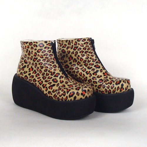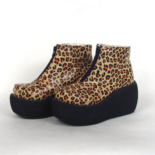 Leopard Brown 3.1″ alto tacco speciale pelle sintetica punta rotonda cinturini alla caviglia piattaforma ragazze Lolita Shoes LF00148