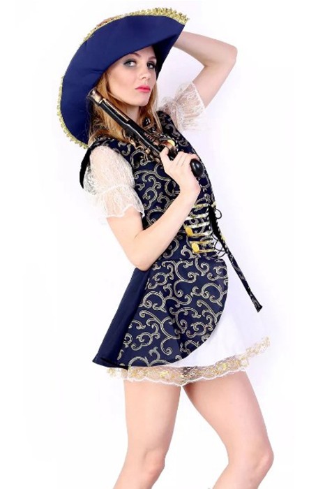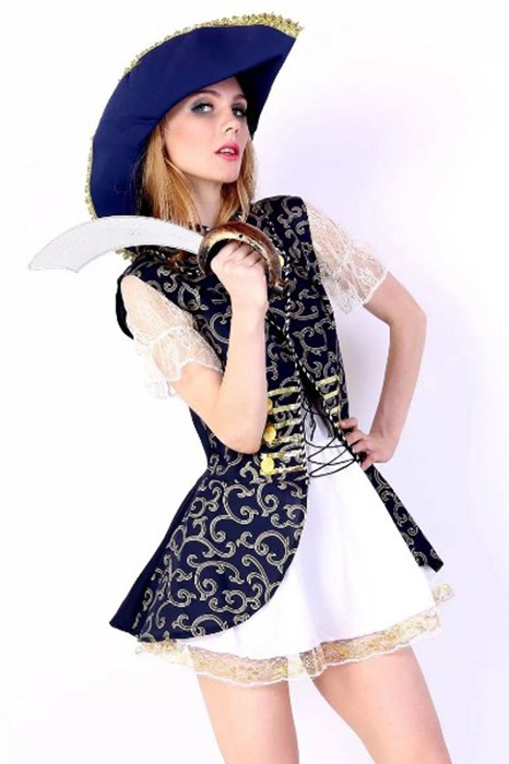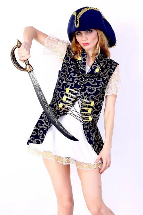 Caratteristiche: Questo costume è fatto da film caldo pirata dei Caraibi.Esso comprende camice bianco, cappello blu e abito, sentendosi comforable e morbido.